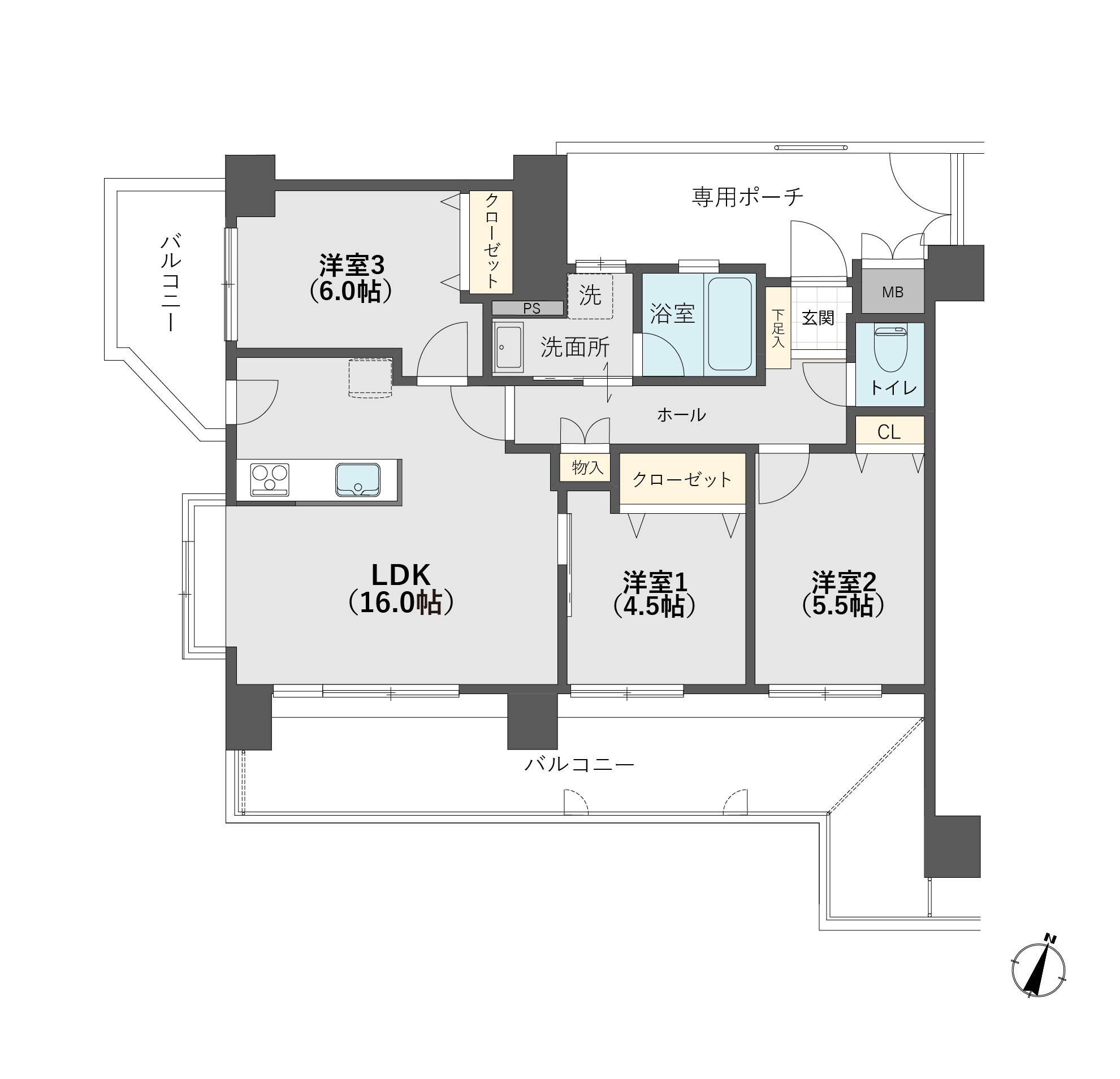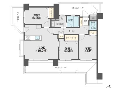 | 間取り内訳 | 洋室約4.5帖 / 洋室約5.5帖 /洋室約6.0帖 / LDK約16.0帖 |